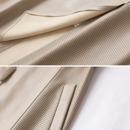High-quality leather, contemporary spirit! Crafted from soft sheep leather, featuring a distinctive perforated mesh insert that creates subtle movement and good breathability.